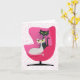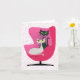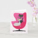 Ce carte pour notes a deux chats du milieu du siècle portant des colliers de pierres précieuses en diamant, l'un est noir avec les yeux verts, l'autre blanc avec les yeux jaunes assis dans une chaise rose vibrante sur un arrière - plan blanc avec des points roses chauds.