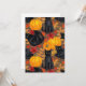 Motif peint à la main avec chats noirs, citrouilles et feuilles d'automne. Mix-media- peinture numérique et aquarelle.