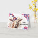 Fêtez un anniversaire sur le thème de la ferme avec notre charmante carte d'anniversaire de chèvre! Ce design fantaisiste est l'illustration charmante d'une chèvre espiègle qui porte un casquette festif et entourée de ballons colorés. L'illustration de l'aquarelle ajoute une touche de fantaisie à cette carte d'anniversaire heureuse personnalisée.