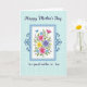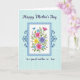 Cette carte présente une disposition haute avec un bouquet lumineux centré à l'intérieur d'un panneau rectangulaire blanc, comme un cadeau frais offert avec affection ❤️. Les fleurs mélangent des pétales de fuchsia, de rose doux, de jaune ensoleillé, de bleu calme et de pourpre doux, nichés parmi des feuilles vertes et de minuscules accents en forme d'étoile qui ressemblent à un moment doux partagé. Une bordure à double ligne en bleu moyen et clair entoure le panneau, donnant au bouquet un aspect confortable et embrassé. Des volutes décoratives bleu foncé s'assoient à gauche et à droite, ajoutant une touche démodée sans paraître lourdes. Près du bord supérieur du cadre, un petit oiseau bleu foncé se repose comme s'il s'arrêtait pour surveiller la scène 🌼. L'arrière-plan est d'un bleu aquamarine pâle avec une texture de grille faible qui garde tout aérien et léger. Un lettrage indigo foncé apparaît au-dessus du bouquet encadré et à nouveau en dessous, disposé