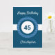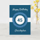 Une carte bleue personnalisée de 45ème anniversaire, que vous pouvez facilement personnaliser avec son nom sur le devant de la carte. Vous pouvez également personnaliser le message de la carte intérieure si vous le souhaitez. Cette carte bleue personnalisée de 45ème anniversaire pour lui ferait un grand souvenir.