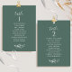Aidez vos invités à trouver leur table avec ces élégantes cartes de sièges vert profond avec le nom des invités. Cartes recto verso pour que les clients puissent chercher leur nom à l'avant et à l'arrière. Libérez de l'espace tout autour en vous donnant la liberté d'utiliser des clips ou des trous de poinçonnage pour accrocher des écrans, ou d'utiliser un support/cadre de table. Le design est composé d'un arrière - plan vert profond, d'un texte blanc, d'un délicat détail floral dessiné à la main en blanc et de détails calligraphiques manuscrits. Plusieurs options de couleur. Ayez tous les numéros de table dans la même couleur ou mélangez les couleurs selon le thème de couleur de votre événement. Une partie d'une collection avec une variété de produits de coordination disponibles, y compris les cartes de numéro de table et les menus.