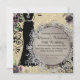 Une robe noire chic sur un fond doré glittery aux fleurs violettes et aux tourbillons décoratifs, associée à un cercle glissant aux fleurs argentées, où vous pourrez customiser votre événement. Élégance élégante de la poule.