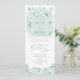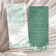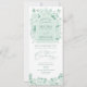 Élégant programme de mariage vert et blanc avec motif botanique floral de la Chinoiserie
