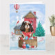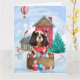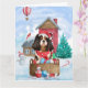 Carte Chien Cavalier King dans la maison de Noël enneigé