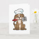 Carte Chien comme cuisinier avec chapeau de chef et spat