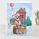 Une idée de cadeau de Noël parfait pour vos amis qui aiment les chiens, Un chien mignon assis dans la neige à côté de l'arbre de Noël et la maison de chien est un cadeau incontournable pour vous ou vos amis ce Noël.
