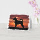 Votre race préférée de chien silhouetté par un somptueux coucher de soleil Pacifique en sienne.