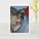 Carte de vœux Chien dormant avec un os. Vous pouvez facilement personnaliser ce produit gratuitement si vous souhaitez ajouter du texte ou changer la couleur de l'arrière-plan.