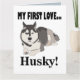 Carte Chien Husky Sibérien Chien Husky Sibérien Mignon conçue par Nisha Prabhu. Envoyez un message adorable avec cette carte de chien Husky Sibérien mignon ! Parfaite pour n'importe quelle occasion, cette carte présente une illustration charmante d'un Husky joueur qui fera certainement sourire n'importe qui. Illuminez la journée de quelqu'un avec cette carte douce et sincère qui capture l'esprit de ces chiots adorables. N'attendez pas, procurez-vous ce design mignon dès aujourd'hui !