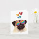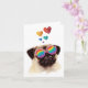 Carte Chien Pug avec coeurs Saint-Valentin