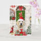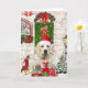 Chien Retriever doré Noël assis à l'extérieur de la maison décorée avec une couronne de Noël, l'arbre de Noël est une idée cadeau de Noël parfaite pour les amoureux des chiens.