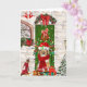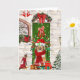 Chien Sheltie Noël assis à l'extérieur de la maison décorée avec une couronne de Noël, l'arbre de Noël est une idée de cadeau de Noël parfait pour les amoureux des chiens.