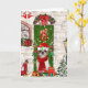 Chien Shih Tzu Noël assis à l'extérieur de la maison décorée avec une couronne de Noël, l'arbre de Noël est une idée cadeau de Noël parfaite pour les amoureux des chiens.