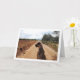 Carte de vœux Chien sur une route poussiéreuse. Vous pouvez facilement personnaliser ce produit gratuitement si vous souhaitez ajouter un texte ou changer la couleur de l'arrière-plan.