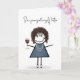 Mignonne figurine avec basket, robe jean bleu, cheveux, collier de perle, et un verre de vin rouge pour l'anniversaire. Tout le texte peut être modifié.