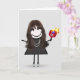 Mignonne figurine avec cheveux, baskets, collier de perle, et robe de pois tenant une pagaie flamboyante. La couleur Arrière - plan peut être modifiée. Tout le texte est modifiable.