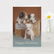 Carte d'anniversaire inspirée d'un tableau d'animaux de compagnie de l'artiste autrichien Carl Reichert. Trois adorables petits chiots (beagle ?), deux avec vue sur un panier et le troisième assis devant. N'oubliez pas de customiser le texte sur le papier qui est joint au panier (Hi Jennifer).
