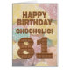 Une carte de plaisir pour les amateurs de chocolat. L'écriture est faite à partir de barres chocolatées!. Une belle carte d'anniversaire pour toute femme.
