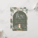 Un baby shower mignon design d'une chouette dans un cheval à bascule et un choo train en vert et pêche et blanc arrière - plan de couleur avec options de personnalisation.
