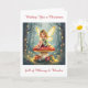 A pretty .little fairy sitting atop a whimsical mushroom covered in Christmast lights and surrounded by gifts. Inside is a sweet holiday poem with a cottage core Christmas vibe.