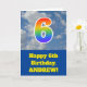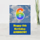 L'avant de cette amusante carte de voeux de 6ème anniversaire présente une représentation ciel bleu nuageux, ainsi que le numéro "6" avec un spectre arc-en-ciel multicolore comme un dégradé. L'avant comporte également un message d'anniversaire, y compris un nom de destinataire modifiable. L'intérieur comporte un message de voeux d'anniversaire modifiable, ou peut-être pourrait-il être effacé et laissé vide si un message doit être écrit à la main à la place. Une carte d'anniversaire personnalisée comme celle-ci pourrait être une façon amusante d'envoyer des voeux d'anniversaire à quelqu'un qui célèbre son sixième anniversaire. [~Z0000370]