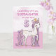 Un doux petit poney rose comme votre filleule gambade avec le numéro cinq ! Des détails dorés sont tissés dans sa crinière et sa queue. Carte parfaite pour souhaiter son 5ème anniversaire à votre filleule !