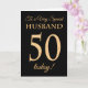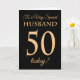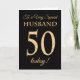 Une cinquantième carte d'anniversaire chic pour "un mari très spécial", avec un numéro 50 composé de nombres d'or-effet et de mot "mari", dans l'or-effet, sur un arrière - plan noir. Le message intérieur, que vous pouvez changer si vous souhaitez, est "joyeux anniversaire"