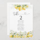 Tableau de sièges de table Citrus citronné et vert. Cette invitation à la douche de mariage élégante et élégante présente de magnifiques aquarelles peintes à la main de citron et de fleurs d'agrumes vertes. Trouvez les articles correspondants dans la collection Florale Citrus Citrus Lemon and Greenery.