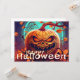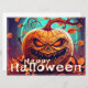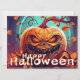 Carte Citrouille orange effrayant avec visage, Halloween