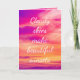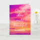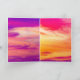 Cette carte a une image brillante du ciel pendant un coucher de soleil dans des couleurs vives de violet et jaune, et des mots encourageants : Ciel nuageux font de beaux couchers de soleil.