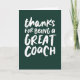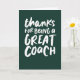 Merci d'être un excellent entraîneur ! Cette carte élégante et amusante est une excellente façon de montrer votre appréciation pour une saison sportive réussie. L'arrière - plan est vert foncé avec type. L'intérieur comprend du texte personnalisable et beaucoup de place pour toute l'équipe à signer si nécessaire. Ce carte de remerciements d'entraîneurs est parfait pour les athlètes jeunes et âgés - des ligues de jeunes aux sports de lycée et au-delà.