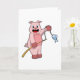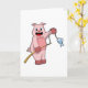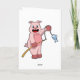Carte Cochon à la pêche avec canne à pêche et poisson