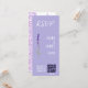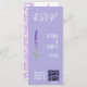 Cette carte RSVP tendance en couleurs lavande est la parfaite correspondance de la même collection. Le design est composé de couleur lavande classique et de typographie moderne mélangée à une calligraphie élégante. La carte a un code QR que vous pouvez faire en ajoutant simplement votre adresse de site Web mariage; vous pouvez l'utiliser pour votre site Web mariage ou votre liste de cadeaux mariages.