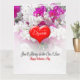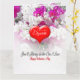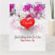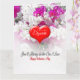 Un cœur profond rouge de la Saint-Valentin avec le message "Mon amour", et un texte que vous pouvez modifier pour y mettre le nom de votre Valentin, est posé sur un fond floral rose et blanc tandis qu'en dessous se trouve le message "Tu seras toujours celui que j'aime". À l'intérieur de la carte avec un fond floral se trouve un cœur avec les mots "Tout mon amour" et un texte prêt à être modifié pour y mettre votre nom, il y a beaucoup de place en dessous pour que vous puissiez écrire votre message manuscrit personnel.