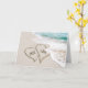 Plage coeur dans le sable avec surf d'océan mousseux pour les jeunes mariés. Le texte dans le coeur peut être modifié.