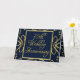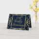 Cœurs métalliques dorés complexes et travail de rouleau doré sur un fond bleu profond. Parfait pour votre célébration de 50e anniversaire.