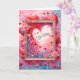 Des cœurs et des fleurs roses et rouges sont partout autour d'un cadre en bois sur cette carte de Saint-Valentin douce et romantique.