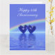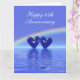 Carte "Joyeux 45ème anniversaire" avec des coeurs saphir flottant sur l'eau sous un arc-en-ciel, et vers personnalisable à l'intérieur.