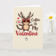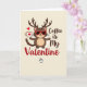 This Valentine's Day card features a cute brown cat in the center, wearing red heart-shaped sunglasses and a pair of reindeer antlers on its head. The cat has a calm, happy look and holds a white coffee cup with a small red heart on it. The background is a soft beige, which helps the warm browns and reds stand out. Near the lower area, the message “Coffee is My Valentine” is written in a smooth script style. The word “Valentine” is larger and in a deeper red, so it grabs your attention. Just below the text, there’s a small pixel-style mouse pointer that adds a simple digital touch. It’s a sweet, funny way to show love for someone—or for coffee—on Valentine’s Day ❤️💌🍫.