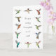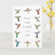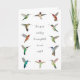 Carte de voeux vierge pour toutes les occasions avec des colibris nord-américains peints à la main comme Anna's, Allen's, Rufous, Purple-courned, Broad-billed, Broad-tailed, et Ruby-throated Hummingbirds et la citation "Le temps passé à observer les colibris n'est jamais perdu."