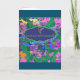 Un colibri en vol avec un arrière - plan vintage à l'aquarelle. Les fleurs sont vert clair et foncé, jolies teintes rose, citron et jaune doré, bleu saphir et violet lilas. Le recto de la carte dit : Joyeux anniversaire. L'intérieur de la carte dit : "Que vos années soient remplies de jours heureux. Joyeux anniversaire !"