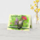 Cette carte Día del Padre présente un jeune colibri à gorge rubis. Il n'a pas encore développé la coloration rubis sur sa gorge. Il est assis sur un bar en métal, prêt à plonger dans le nectar des fleurs qui l'entourent. L'arrière - plan est une palette douce et agréable de rose, rouge, or, jaune et vert. D'autres colibris sont à l'intérieur. Tout le texte peut être customisé selon vos besoins.