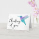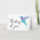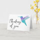 Cette carte de vœux présente une illustration de colibri bleu et violet avec les mots « Pensée pour toi » sur le devant, ainsi qu'un message intérieur sincère qui peut être modifié ou supprimé.