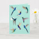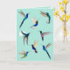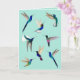 Cette carte présente pour toutes les occasions plusieurs espèces de colibris tropicaux tels que les colibris de Coronet violet velours, le Starfrontlet à gorge bleue, le jacobin à cou blanc, le saphir à queue dorée et les colibris à queue hirondelle. Images tirées de peintures originales sur aquarelles de Christiane Dobbins. L'intérieur est laissé vide pour votre propre message manuscrit.