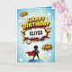 Make a child’s birthday extra special with this fun superhero comic-style birthday card! Featuring bold 3D lettering, playful POW, ZAP & WOW elements, and a heroic character design, this card is perfect for little heroes who love action and adventure. The card can be personalized with any name, making it a unique keepsake for birthdays.