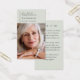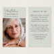 Cette carte de prière commémorative peut être remise en souvenir lors d'une célébration de la vie ou d'un service funéraire ou en hommage spécial à ceux qui n'ont pas pu y assister. Cette carte peut être personnalisée avec une photo préférée et votre choix de prière ou de poème.
