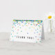 Carte de remerciement avec confetti de couleur primaire, simple et mignonne pour toutes les occasions ! Les couleurs incluent le rouge, le bleu, le jaune, le vert et l'orange