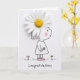 A playful illustration features a simple line drawing of a little girl with rosy cheeks, holding a tiny flower and a white daisy on her head.