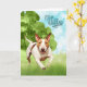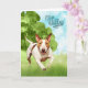 Running through the tall summer grasses in a green open meadow is a cute English Bull Terrier dog with a joyful look on it's face to create a fun watercolor congratulations card for a reBARKable person.